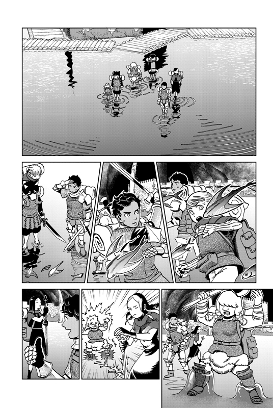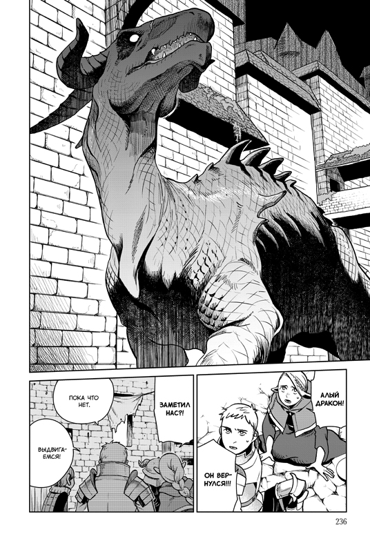 Чем дальше — тем вкуснее и опаснее! Отряд Лайоса, полакомившись призраками и жуками-сокровищниками, потихоньку пробирается на четвертый уровень подземелья, где обитают сладкоголосые сирены и агрессивные ихтиандры. Но не они самые жуткие монстры, а ундина! Марсиль ввязывается в магический бой, и ее тяжело ранят! Она теряет много крови, маны на исцеление больше нет… Неужели Лайосу и остальным придется повернуть назад и на время забыть об алом драконе? Или их найдут и помогут?