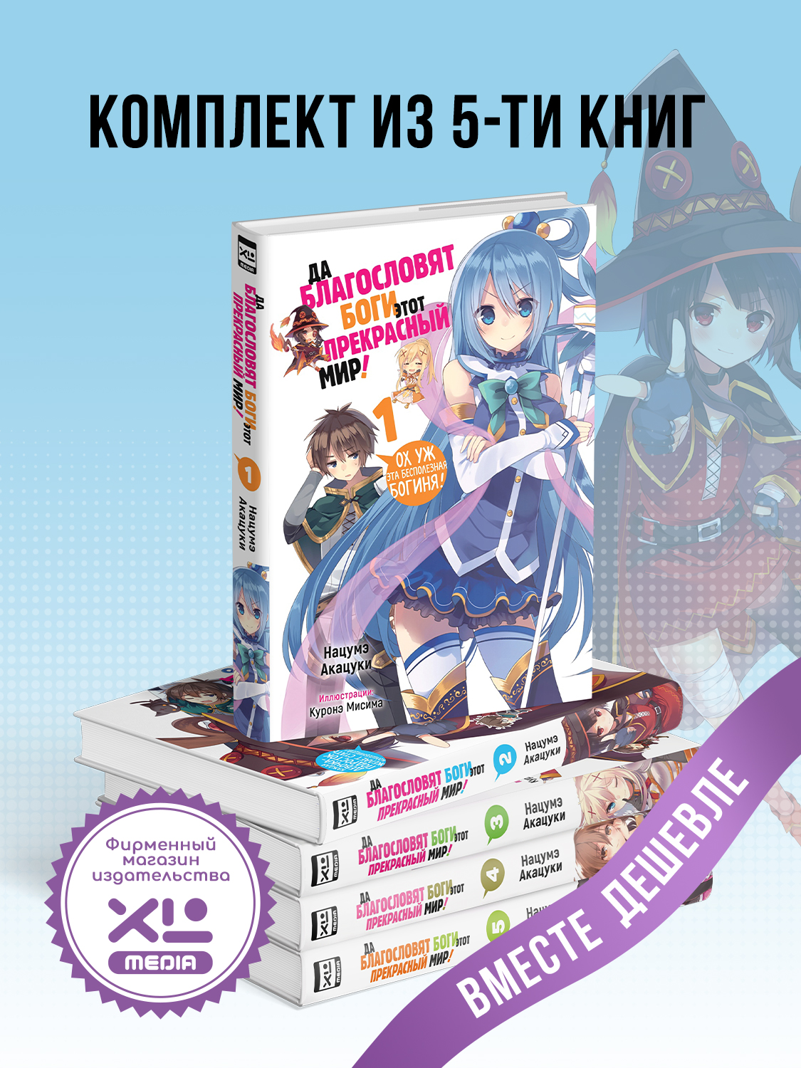 Кадзума Сато — обычный японский школьник, которому ничего не интересно, кроме как рубиться в любимые видеоигры и сидеть дома. Волею случая он оказался в другом мире, где все напоминает типичное фэнтези: магия, монстры, поднятие уровней... Звучит хорошо, вот только в соратниках у него богиня, вечно влипающая в неприятности, архимаг, способная лишь на одно заклинание в день, и крестоносец, обожающая, когда ее избивают враги. И теперь все вместе они обречены спасаться от гигантских лягушек и аллигаторов, а потом и вовсе выступить против жуткого всадника без головы! Как им выжить в этом прекрасном мире?..